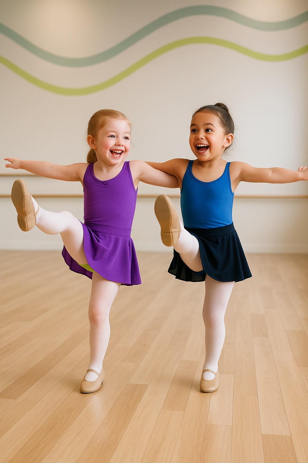 They’ll learn to balance on one leg, improve coordination, and develop musicality through tap combinations that involve clapping, tapping, and keeping the beat. Whether they’re twirling across the floor or tapping their toes to the rhythm, our Teeny Weenies are always learning through movement, music, and joyful play!
